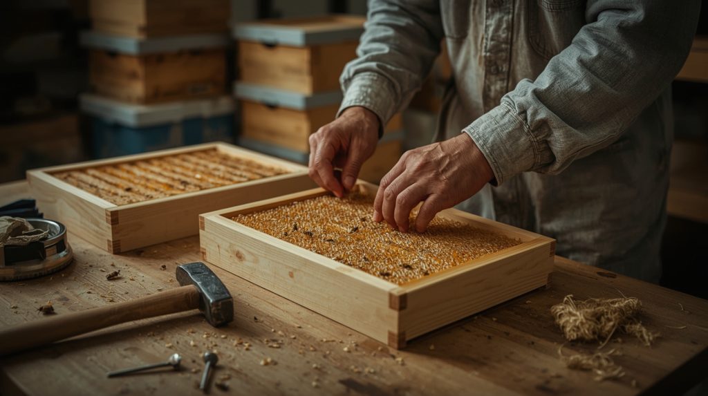 V současnosti vyrábíme především rámkovou míru 39×24 s precizně opracovanými hranami spodní a horní loučky. Každý rámeček prochází ruční kontrolou, takže se do úlu dostanou jen kusy, za které se můžeme podepsat.